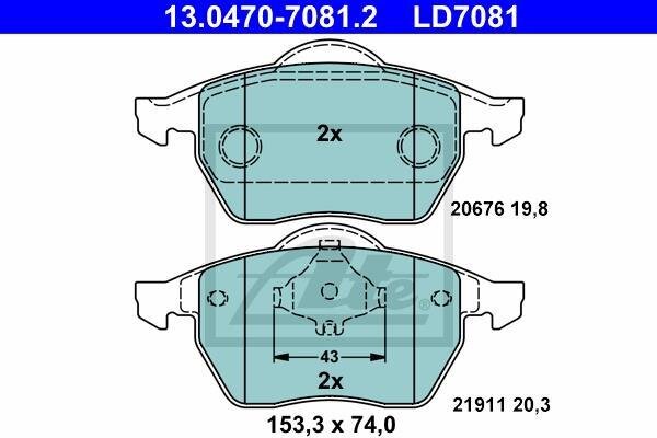 Комплект гальмівних колодок з 4 шт. дисків ATE 13.0470-7081.2