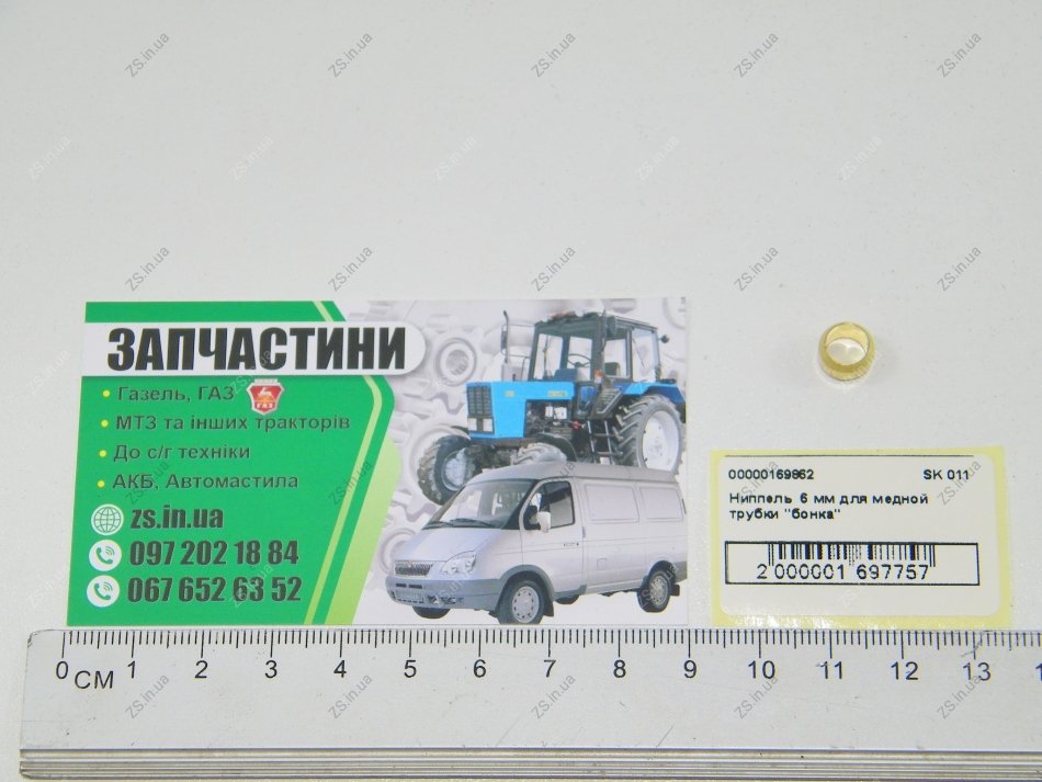 Ниппель 6 мм для медной трубки "бонка" Atiker SK 011