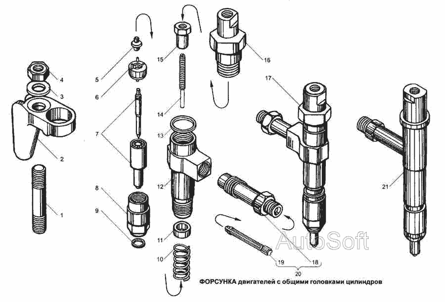 Форсунка двигателей с общими головками цилиндров » Двигатель