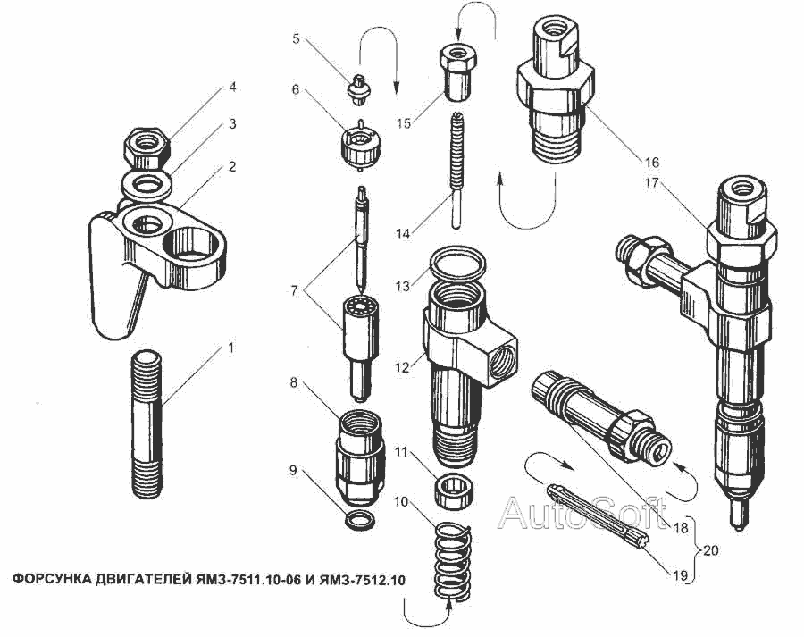 Форсунка двигателя ЯМЗ-7511.10-06 и ЯМЗ-7512-10 » Двигатель