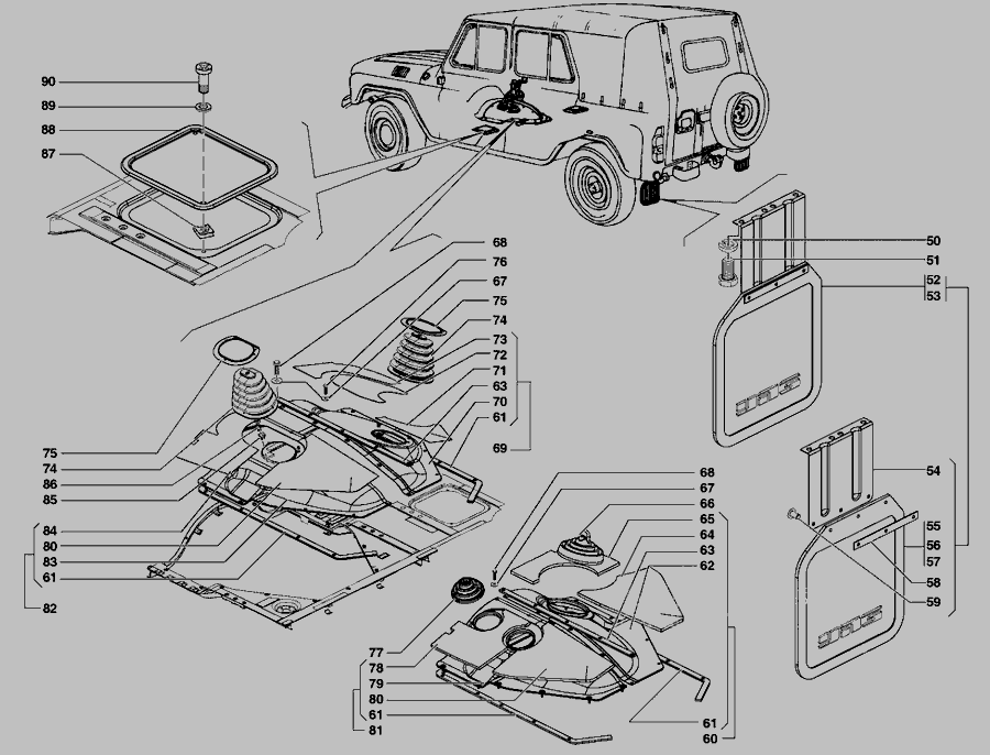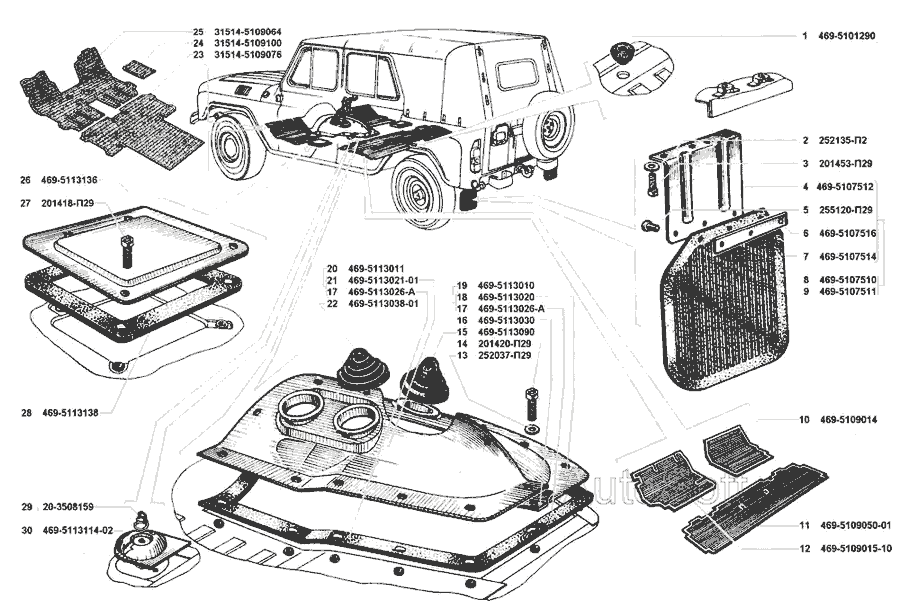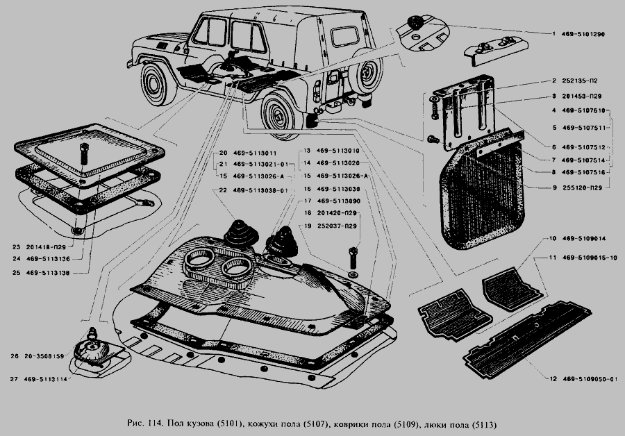 Пол кузова, кожухи пола, коврики пола, люки пола » Кузов
