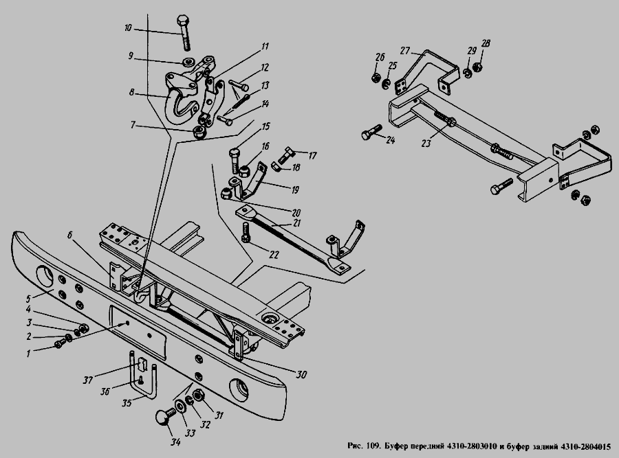 Буфер передний 4310-2803010 и буфер задний 4310-2804015 » Рама, бамперы и брызговики двигателя