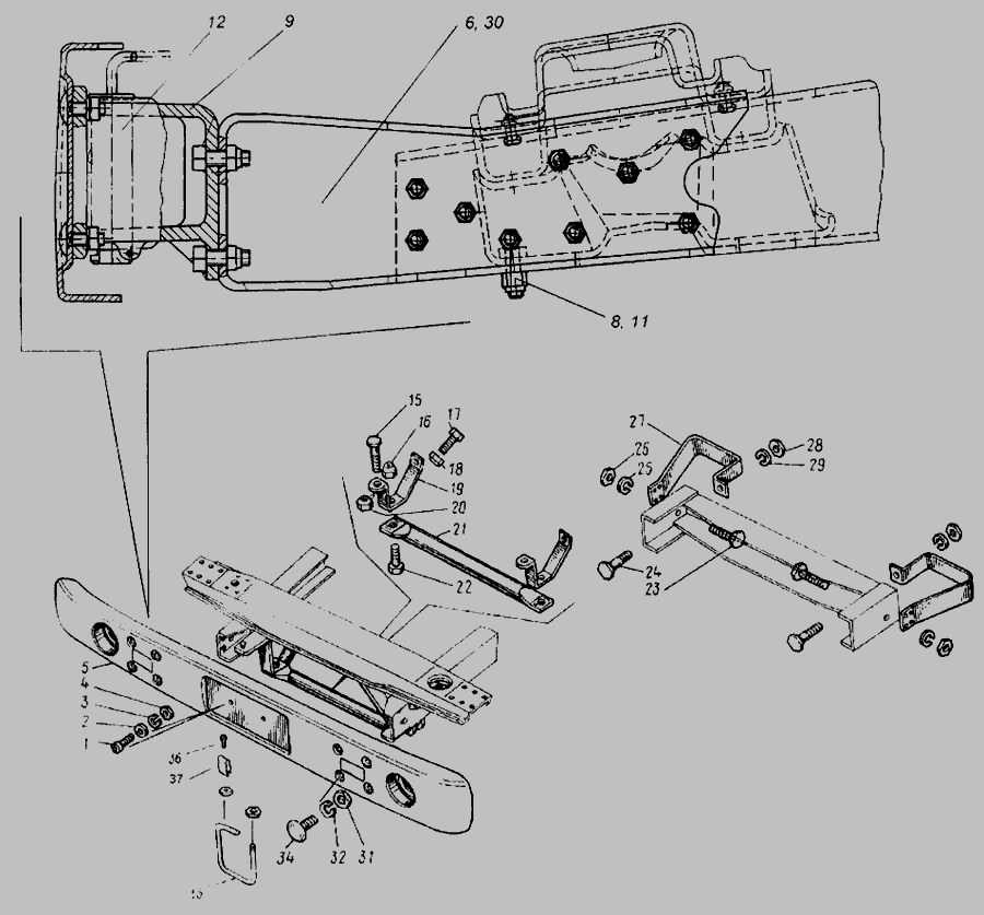 Буфер передний и буфер задний » Рама, бамперы и брызговики двигателя