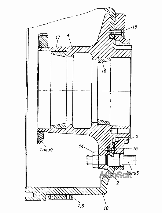 Ступица с тормозным барабаном и кольцом проставочным в сборе 9334-08-3103009 (для модификаций с односкатной ошиновкой) » Рама, бамперы и брызговики двигателя