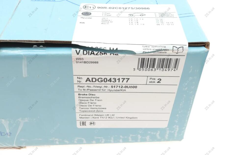 Диск тормозной передний Hyundai, KIA (выр-во) Blue Print ADG043177
