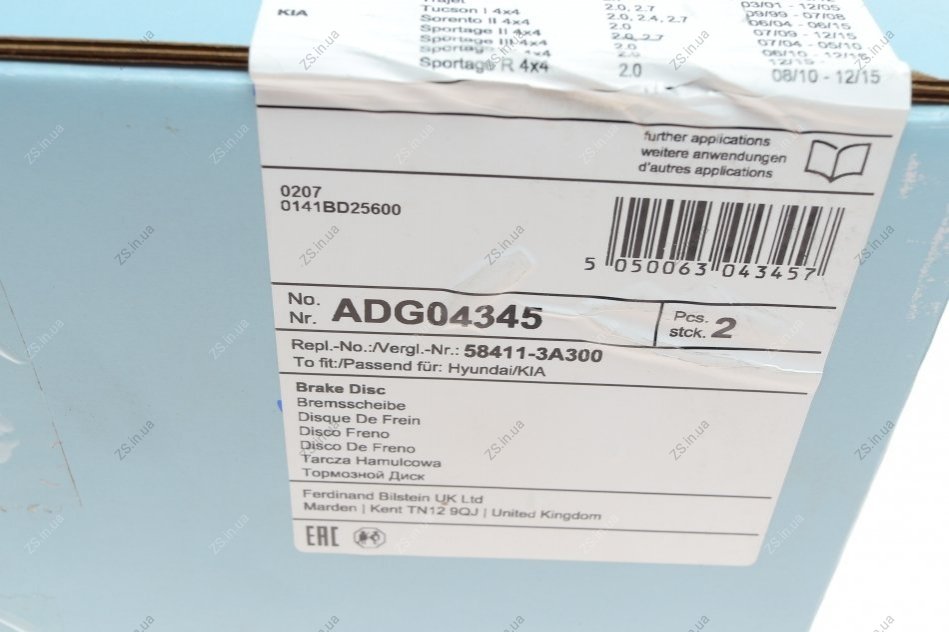 Диск тормозной задний Hyundai, KIA (выр-во) Blue Print ADG04345