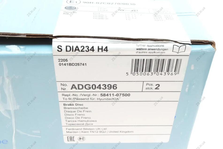 Диск тормозной задний Hyundai, KIA (выр-во) Blue Print ADG04396