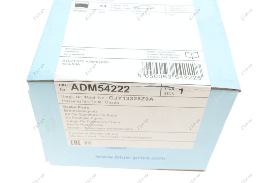 Комплект тормозных колодок из 4 шт. дисков Blue Print ADM54222