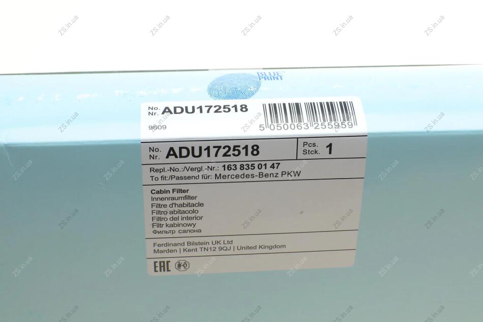 Воздушный фильтр салона Blue Print ADU172518