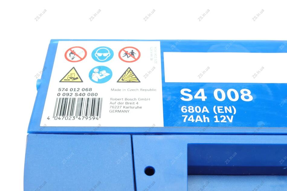 Аккумулятор 74Ah-12v (S4008) (278x175x190),R,EN680 Bosch 0092S40080