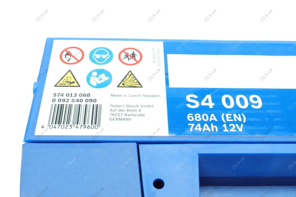 Аккумулятор 74Ah-12v (S4009) (278x175x190),L,EN680 Bosch 0092S40090