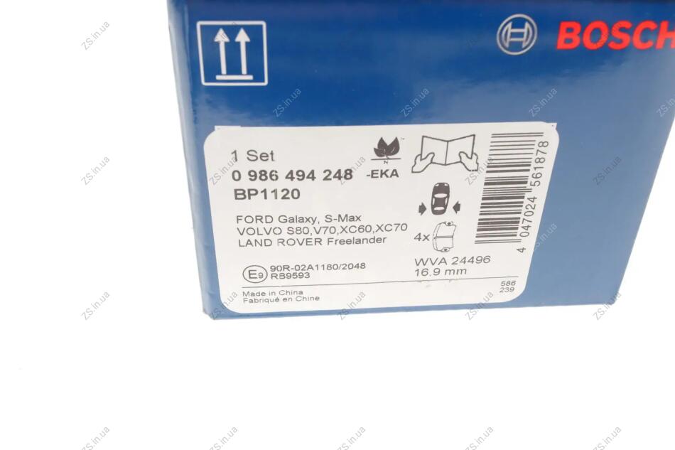 Колодка торм. диск. FORD GALAXY 06-,S-MAX 06-, VOLVO S60,V60 10- задн. Bosch 0 986 494 248