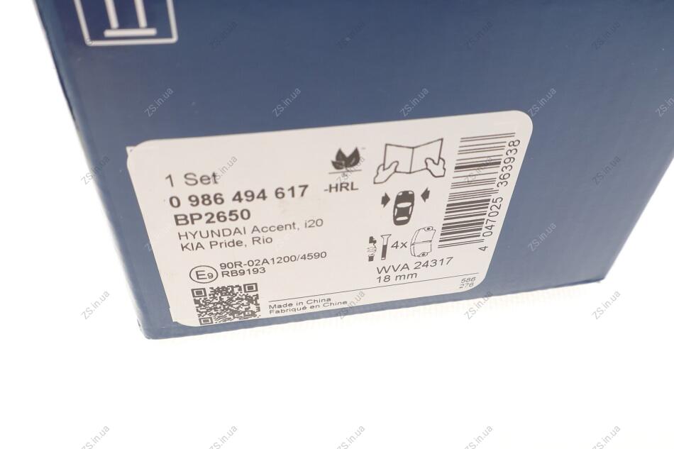ДИСКОВІ КОЛОДКИ Bosch 0986494617