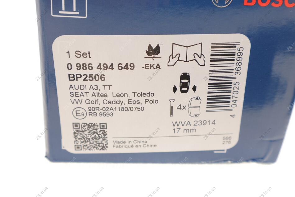 ДИСКОВІ КОЛОДКИ Bosch 0986494649