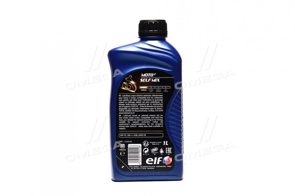 ELF MOTO2 SELF MIX - это смазочный материал, который подходит для относительно нетребовательных ежедневных условий езды. Состав ELF MOTO2 SELF MIX полностью совместим с топливом, которое не содержит свинца. Продукт предварительно разбавлен, и поэтому подходит для раздельной смазки и смешивания. Содержание масла необходимо дозировать в соответствии с рекомендациями производителя.