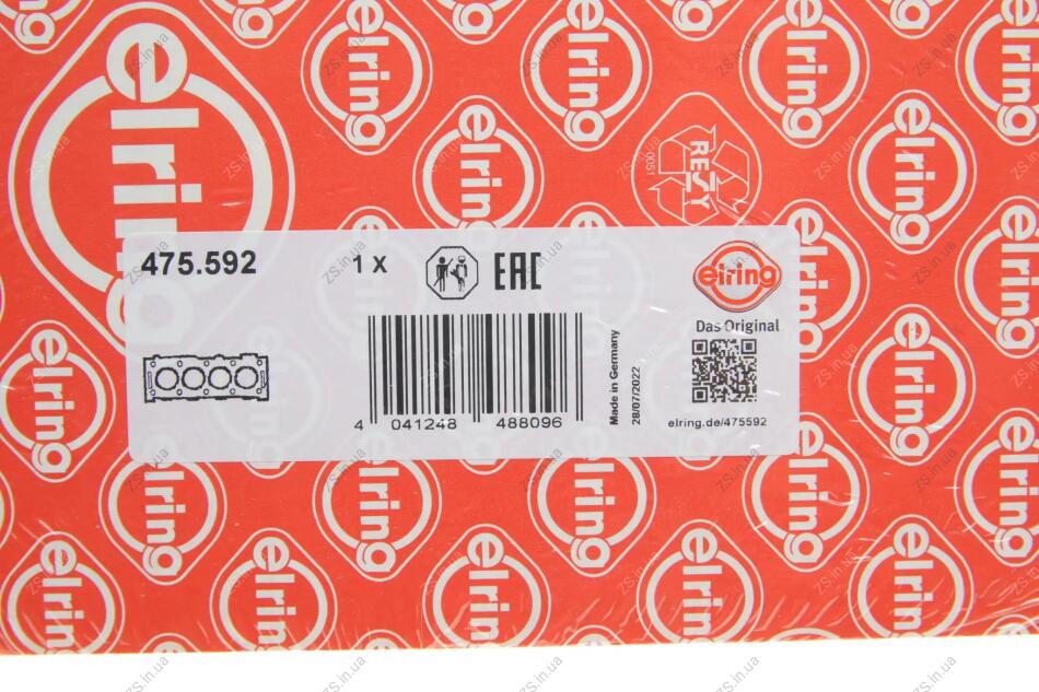 Прокладка, головка блоку циліндрів зліва до 11.2014 SUBARU 2,0 D EE20 1 мм 2 отв. Elring 475.592