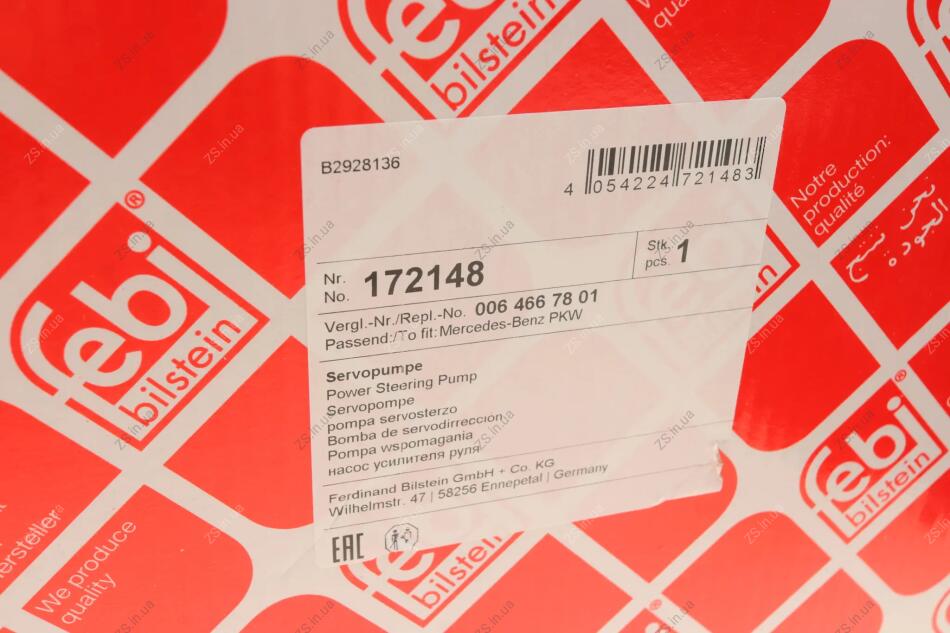 Насос гідропідсилювача керма FEBI BILSTEIN 172148