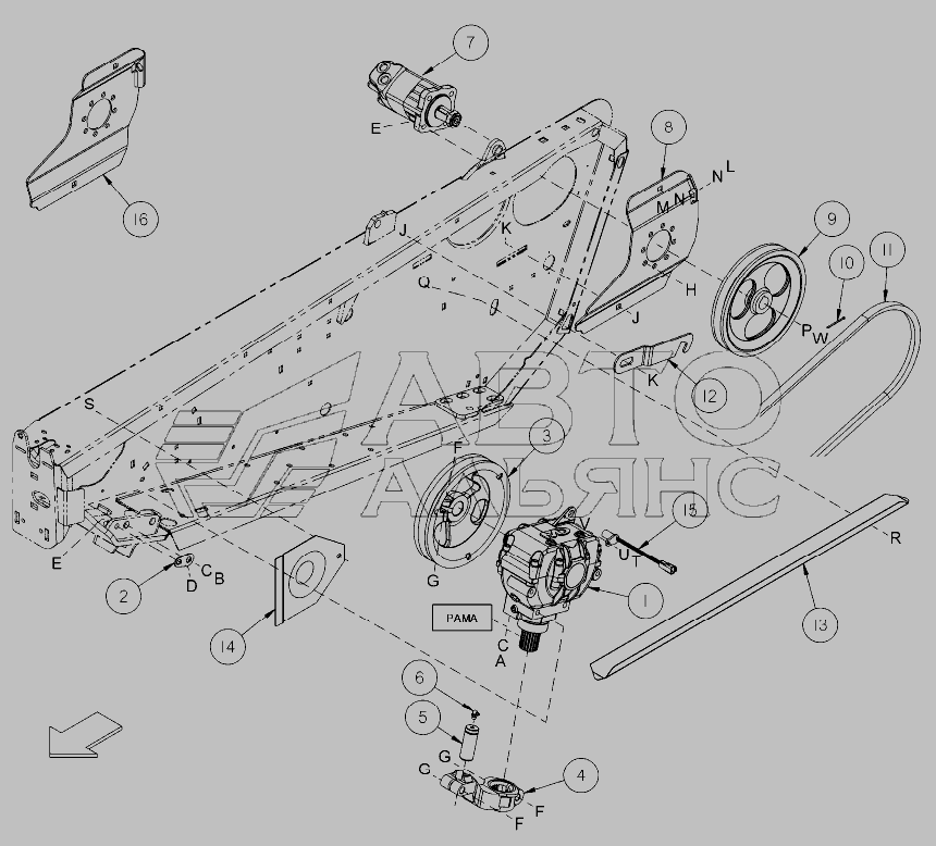 Привод ножа– жатки с одинарным ножом и Не синхронные Жатки с двойным ножом » MacDon D50/D60/FD70