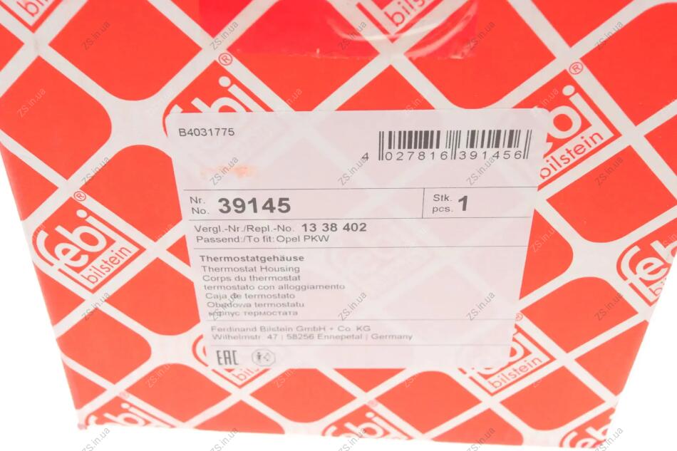 Корпус термостата с датчиком, термовыключателем и уплотнением Opel (выр-во FEBI) FEBI BILSTEIN 39145