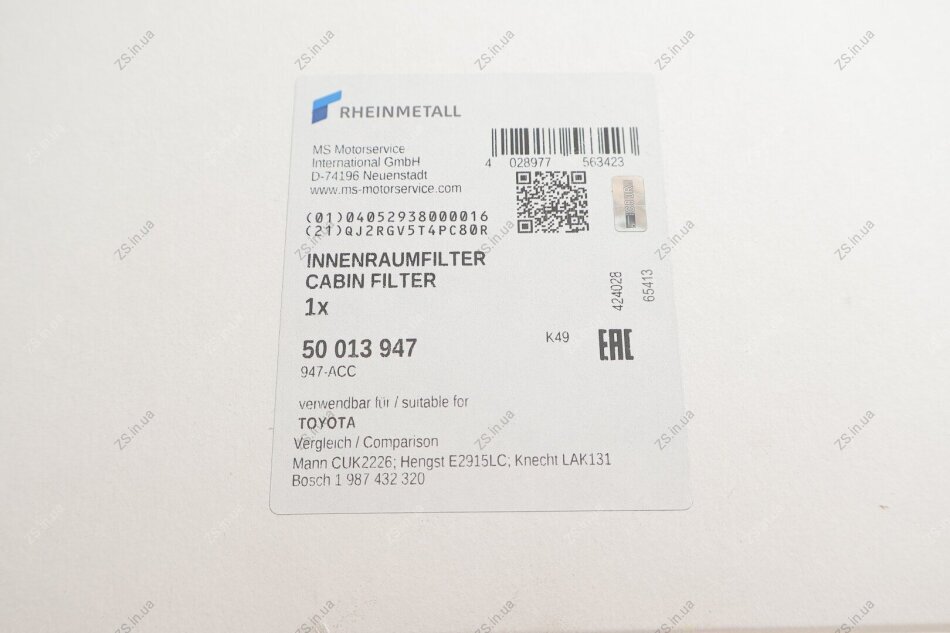 Фільтр салону SUBARU LEGACY, LEXUS RX 03- вугільний KOLBENSCHMIDT 50013947