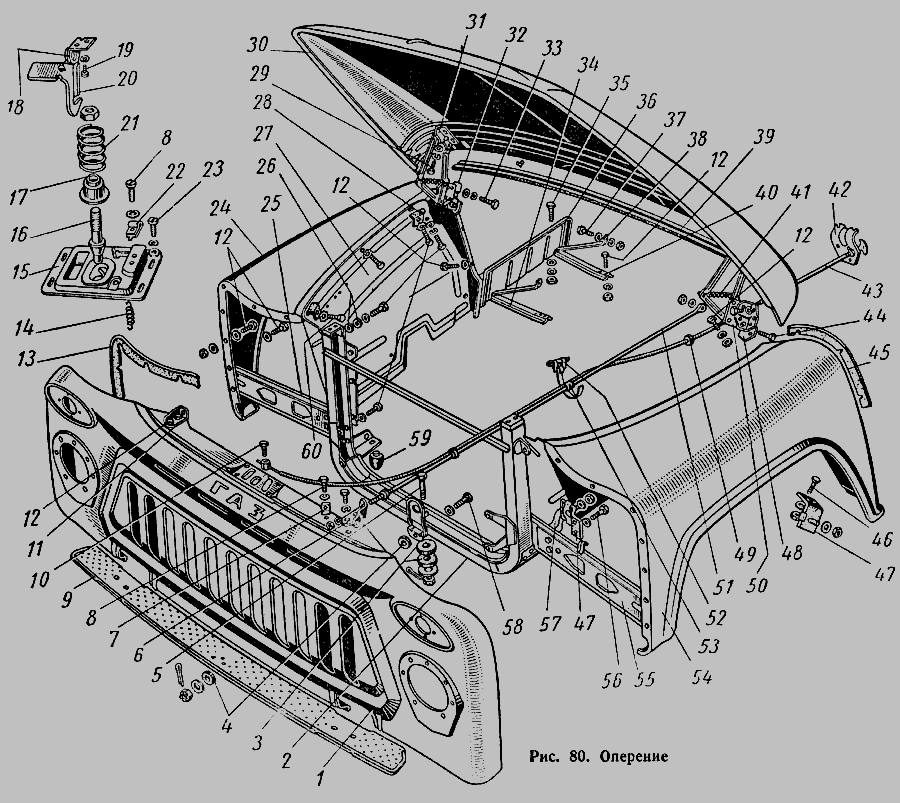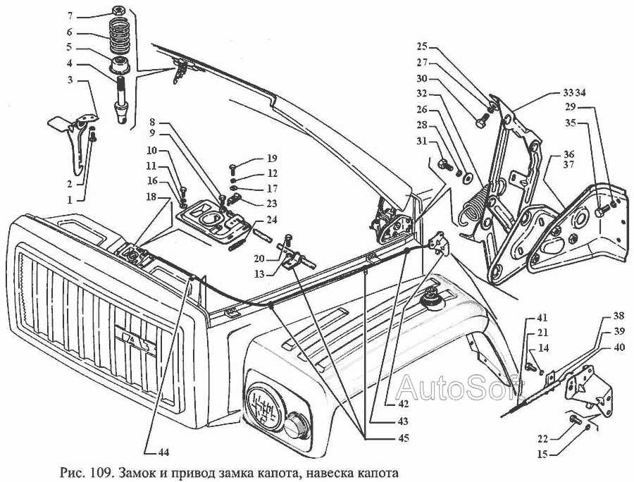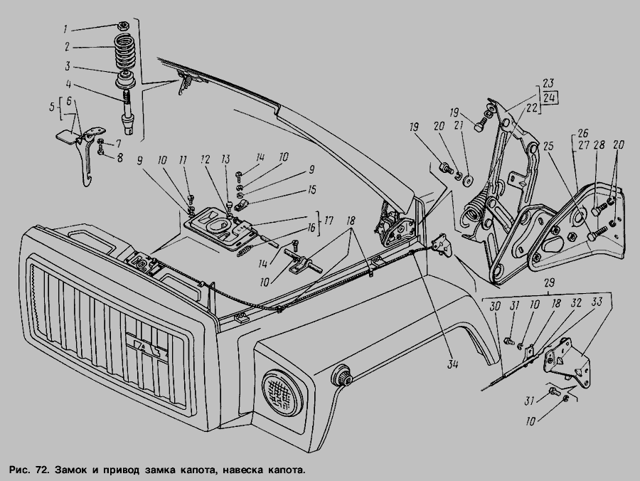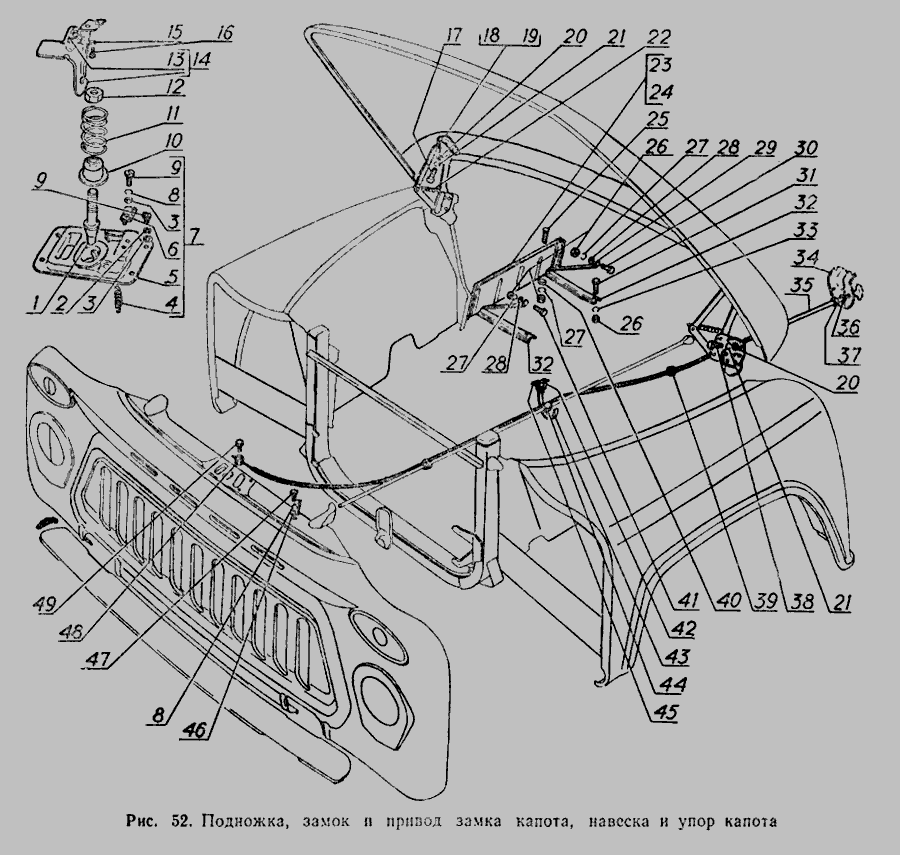 Замок и привод замка капота, навеска капота » Кабина