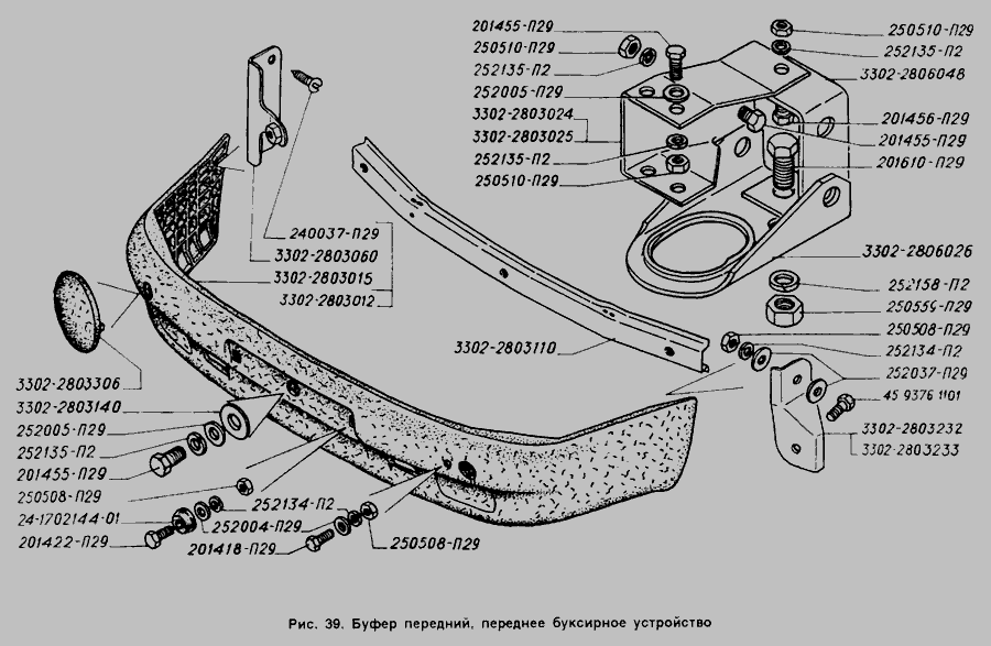 Буфер передний, переднее буксирное устройство » Рама, бамперы и брызговики двигателя
