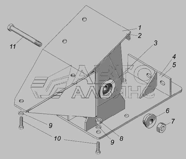 Установка передней подвески кабины » Установка держателя противооткатного упора