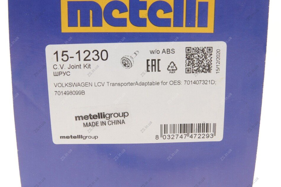 Шарнир равных угловых скоростей с элементами монтажа. METELLI 15-1230