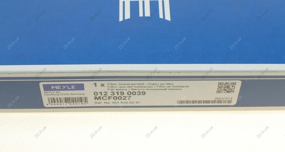 Аналоги "012 319 0039 MEYLE":