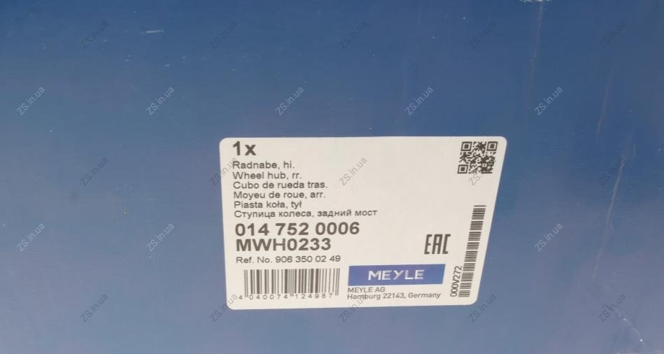 Подшипник предназначен для монтажа на ступицу, шариковый, с элементами монтажа. MEYLE 014 752 0006