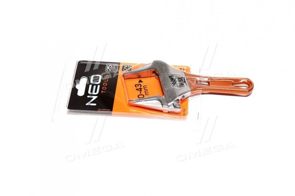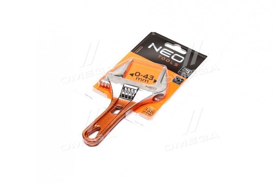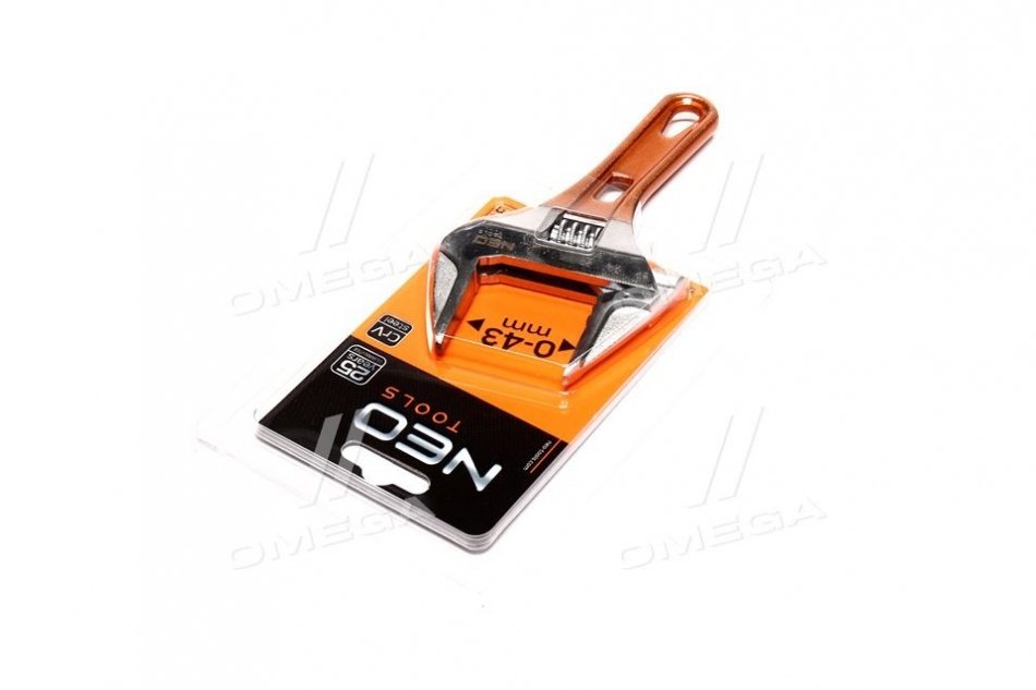 Разводной ключ короткий 156 мм, рабочий диапазон 0-43 мм.. NEO 03-021