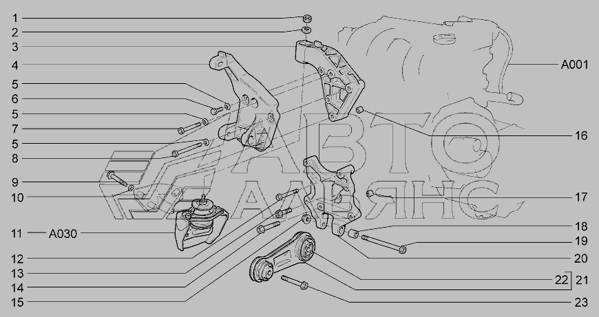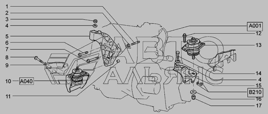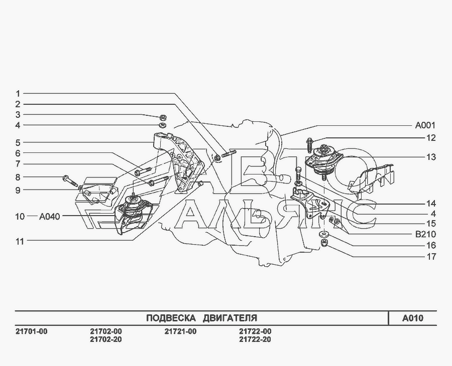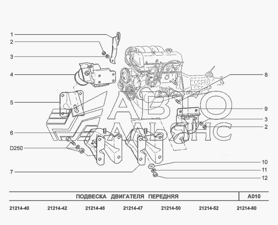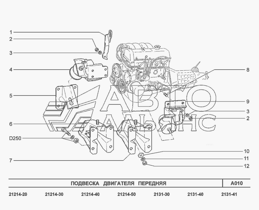 A010. Подвеска двигателя передняя » Двигатель в сборе
