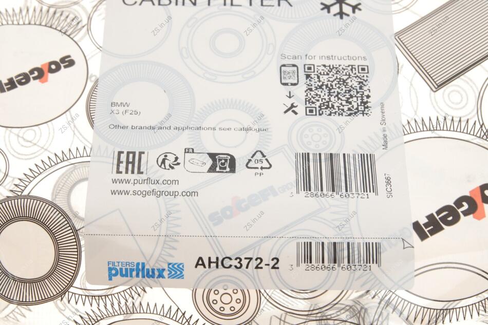 Фільтр салону PURFLUX AHC372-2