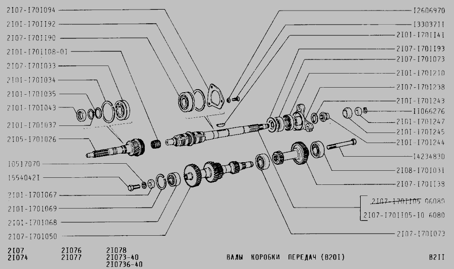 Блок шестерень КПП ВАЗ 2101-07, 2121 5 передачі та заднього ходу (стар. зразка Z38\15) Rider 2107-1701138