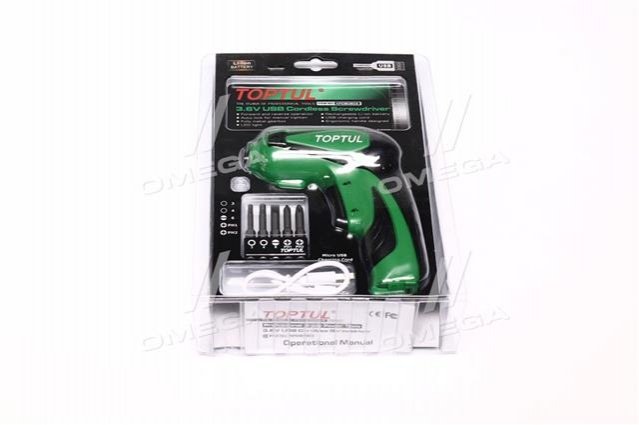 Электроотвертка 1/4" 3.6V 3Nm 350об/мин (про-во) TOPTUL KPDB0803