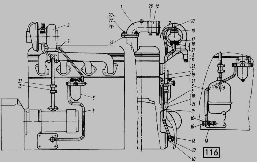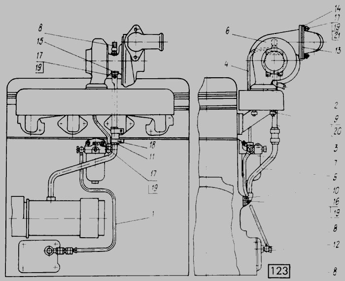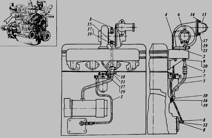Установка турбокомпрессора СМД-14НГ,-14БН,-15Н,-19,-20 » Двигатель
