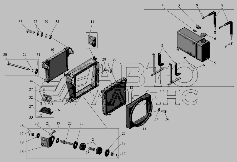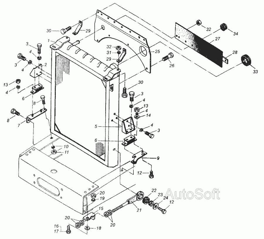 Кріплення водяного радіатора » Двигун