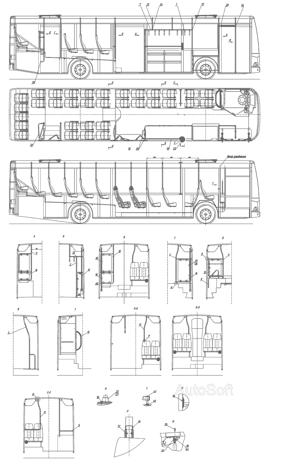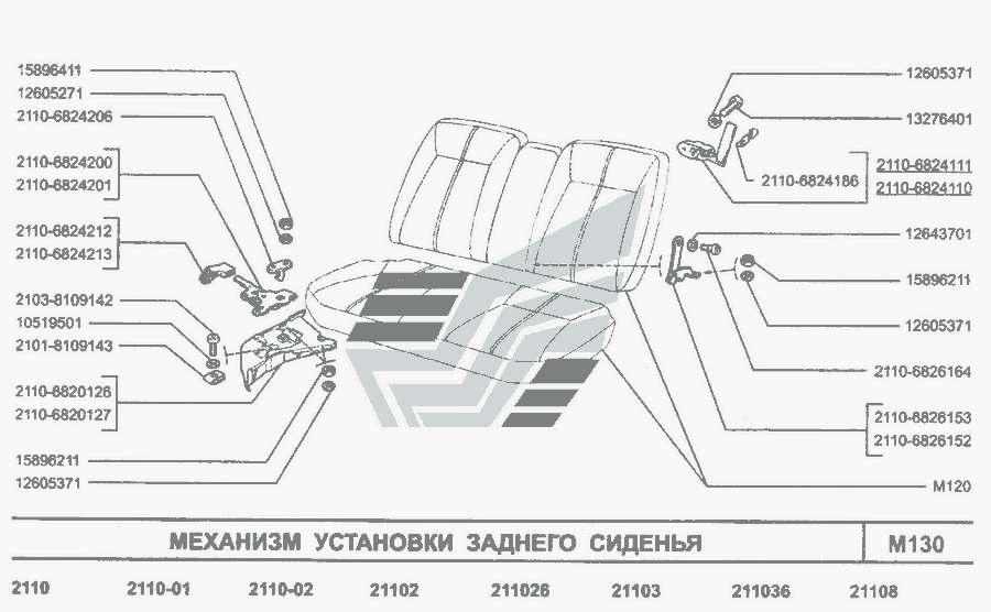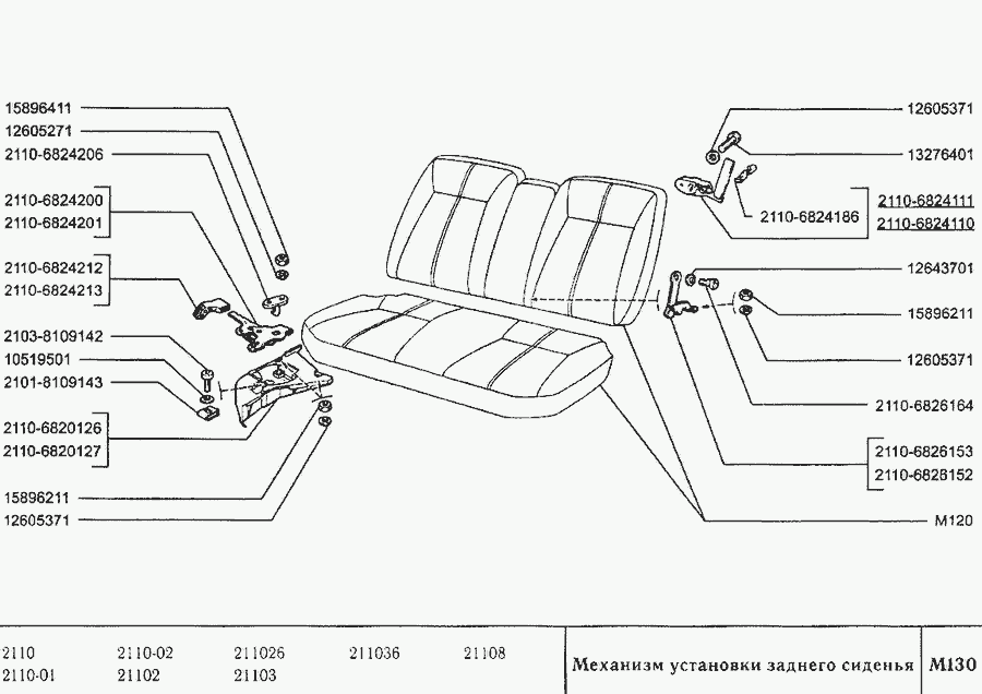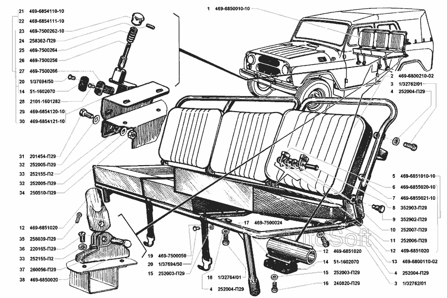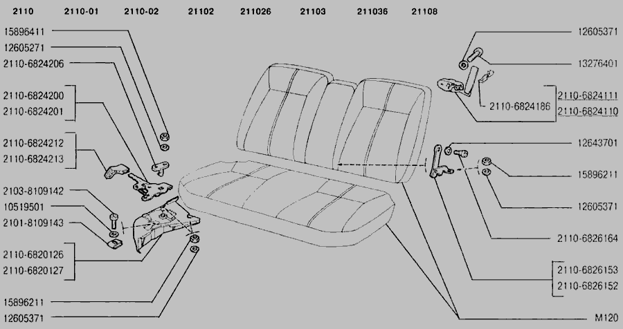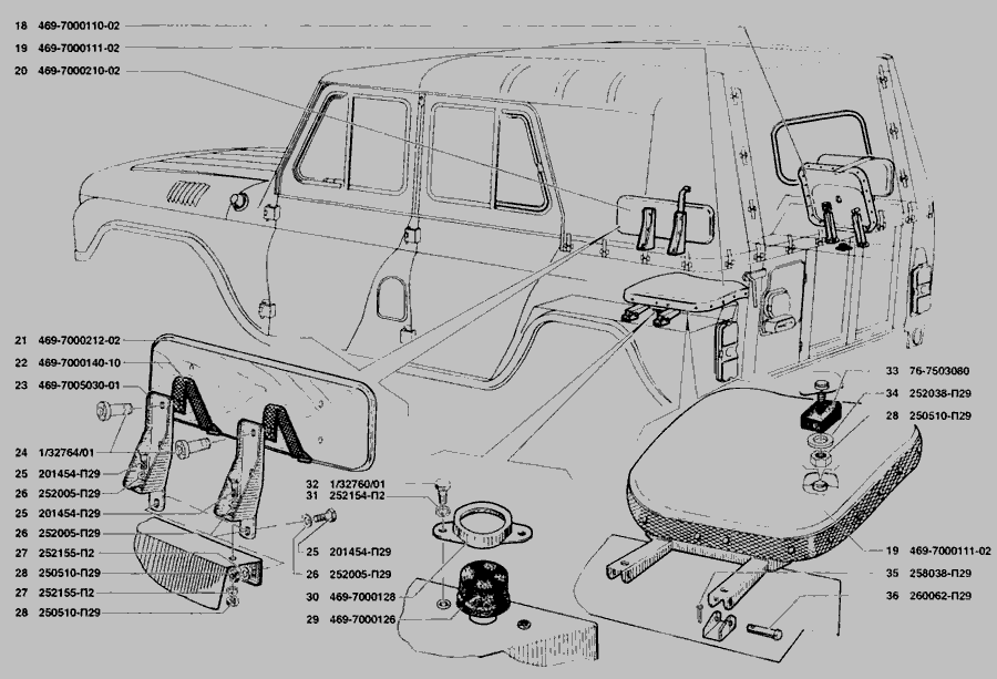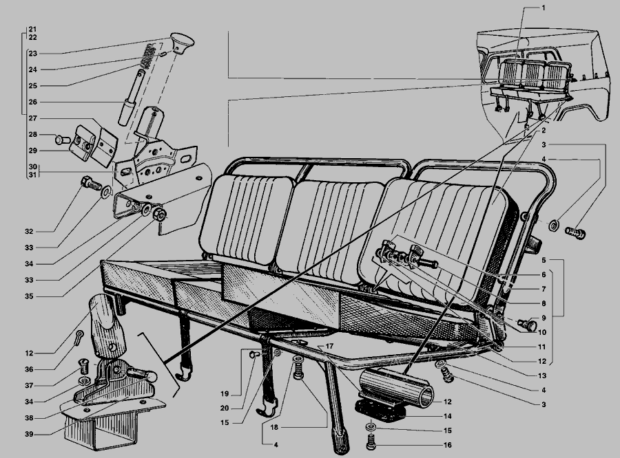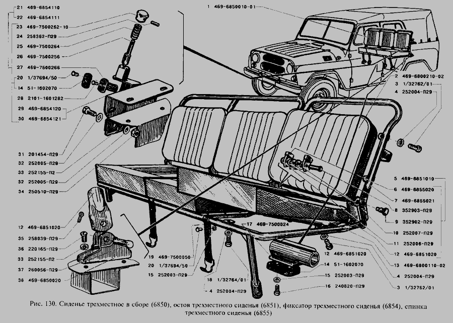 Сидіння тримісне в зборі, остов тримісного сидіння, фіксатор тримісного сидіння, спинка тримісного сидіння » Кузов