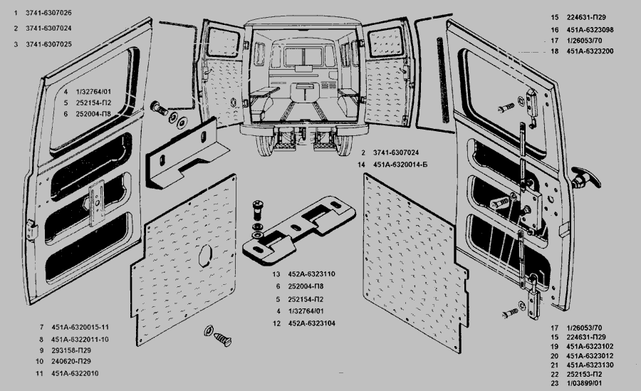 Ущільнювачі дверей задка, двері задка, оббивка дверей задка, замок та ручки дверей задка » Кузов