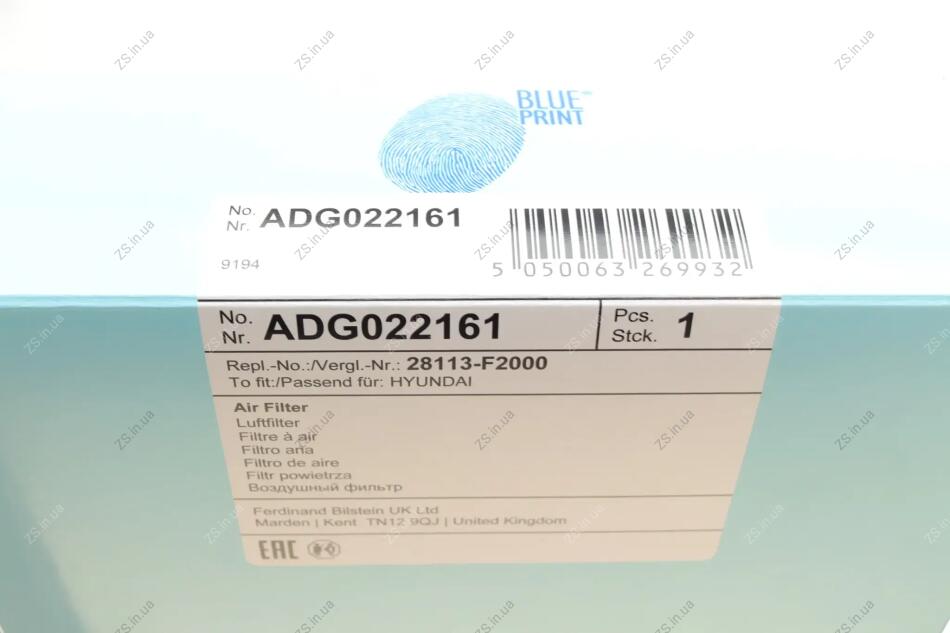 Фільтр повітряний Hyundai, KIA Blue Print ADG022161