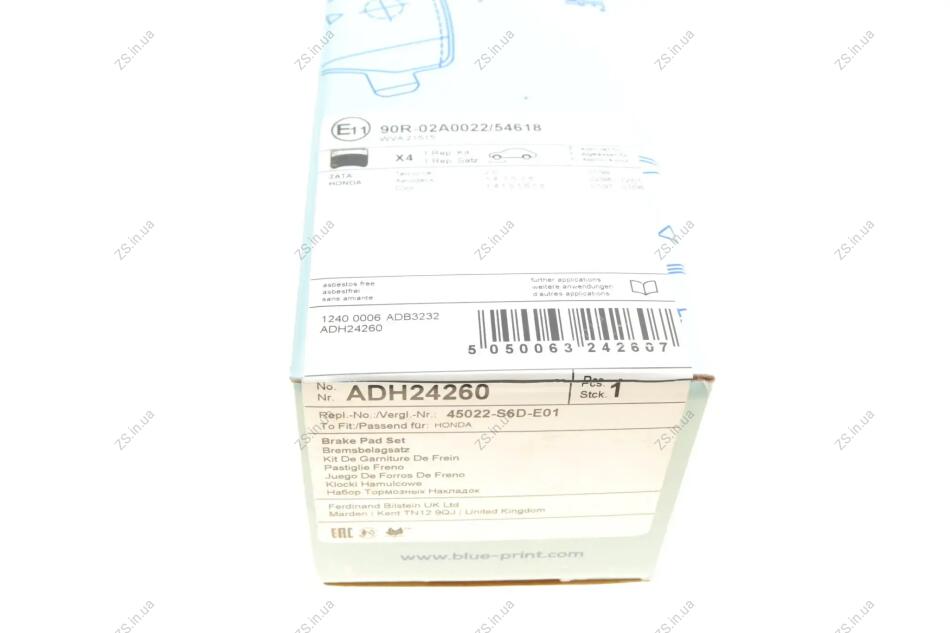 Колодки гальмівні дискові передні Blue Print ADH24260