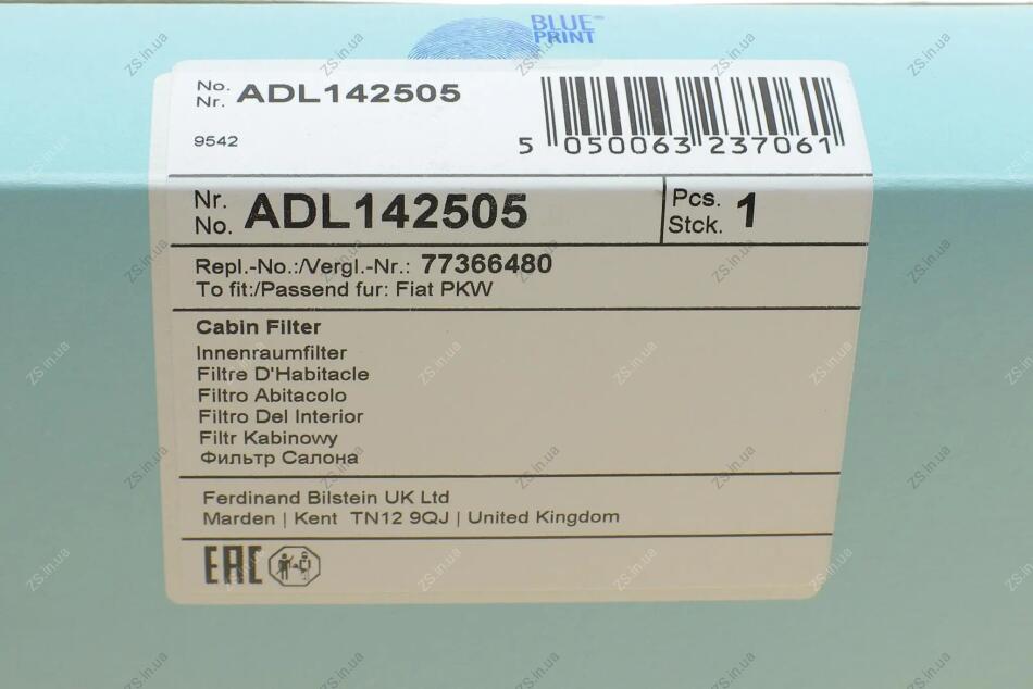 Повітряний фільтр салону Blue Print ADL142505