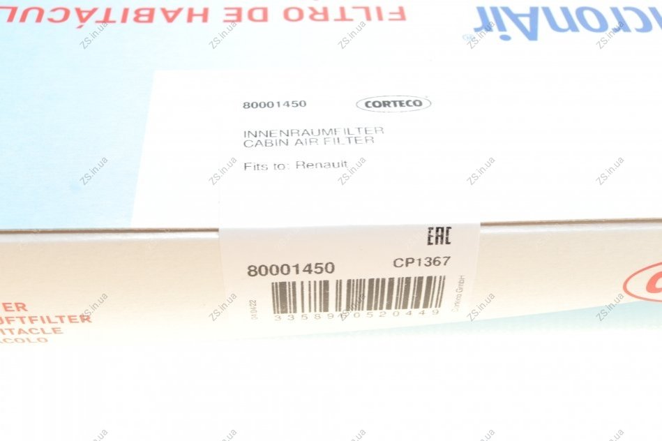 Повітряний фільтр салону Corteco 80001450