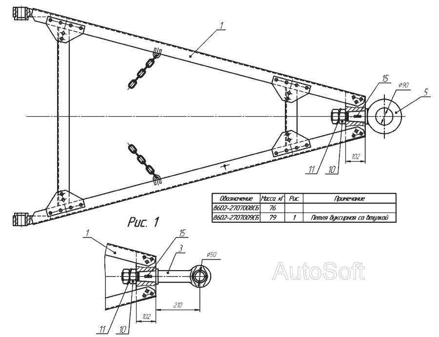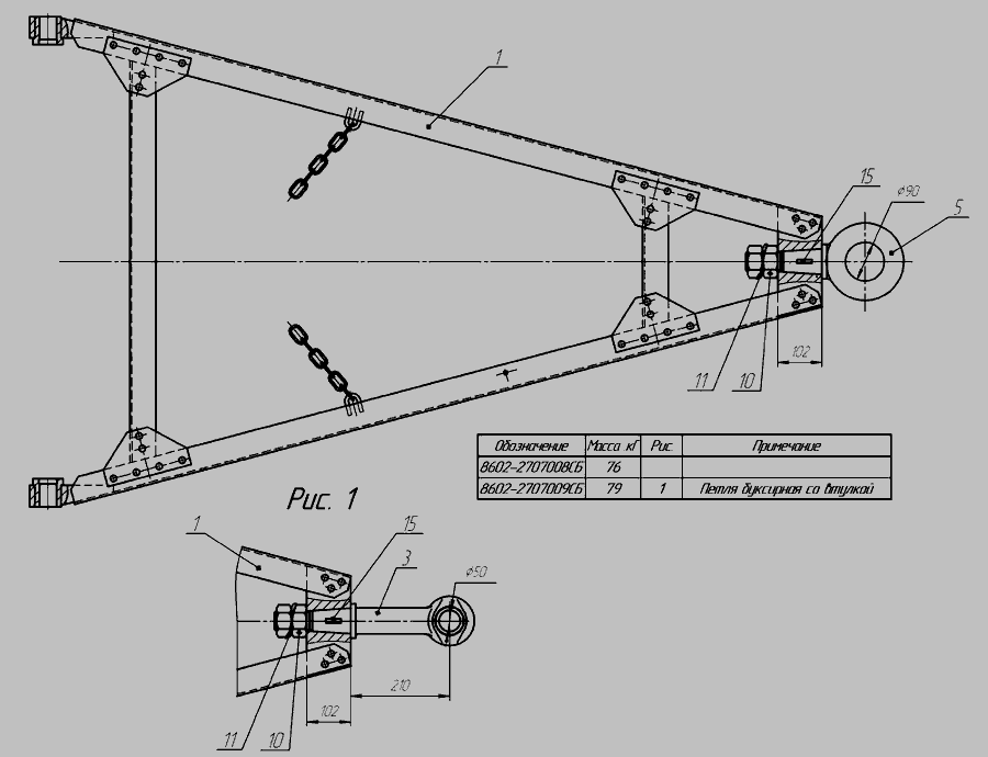 1. Петля дишла причепа 8602-2707042-1 шт.