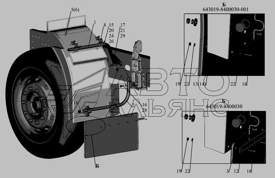 Установка бризковиків передніх коліс 643019-8400030, (-001) » Кабіна