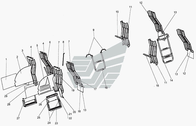 Тримачі. Облицювання радіатора. Задні крила. Підніжка » Кузов