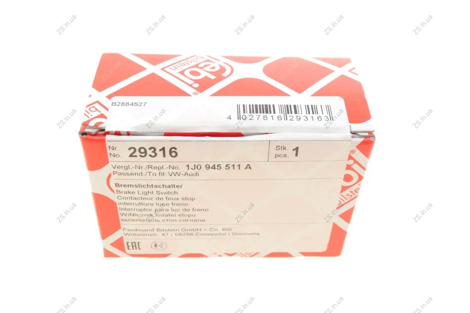 Вимикач ліхтаря сигналу гальмування AUDI, SKODA, VOLKSWAGEN (FEBI) FEBI BILSTEIN 29316