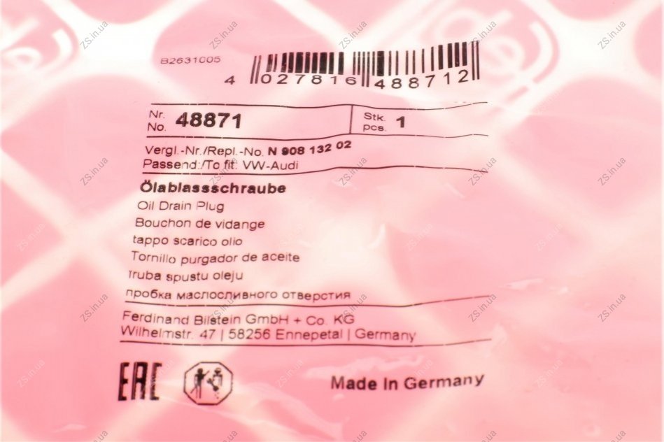 Пробка оливного отвору з кільцем ущільнювача VAG M14X1,5 (FEBI) FEBI BILSTEIN 48871