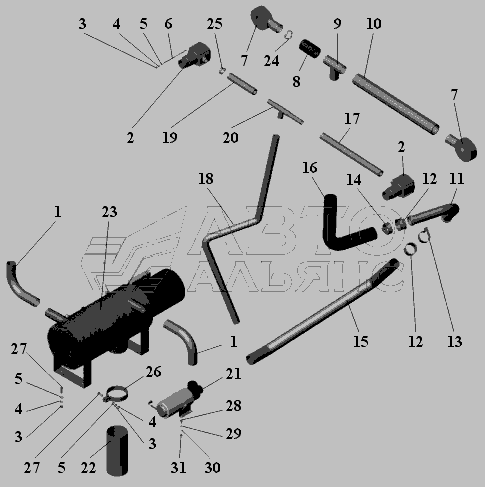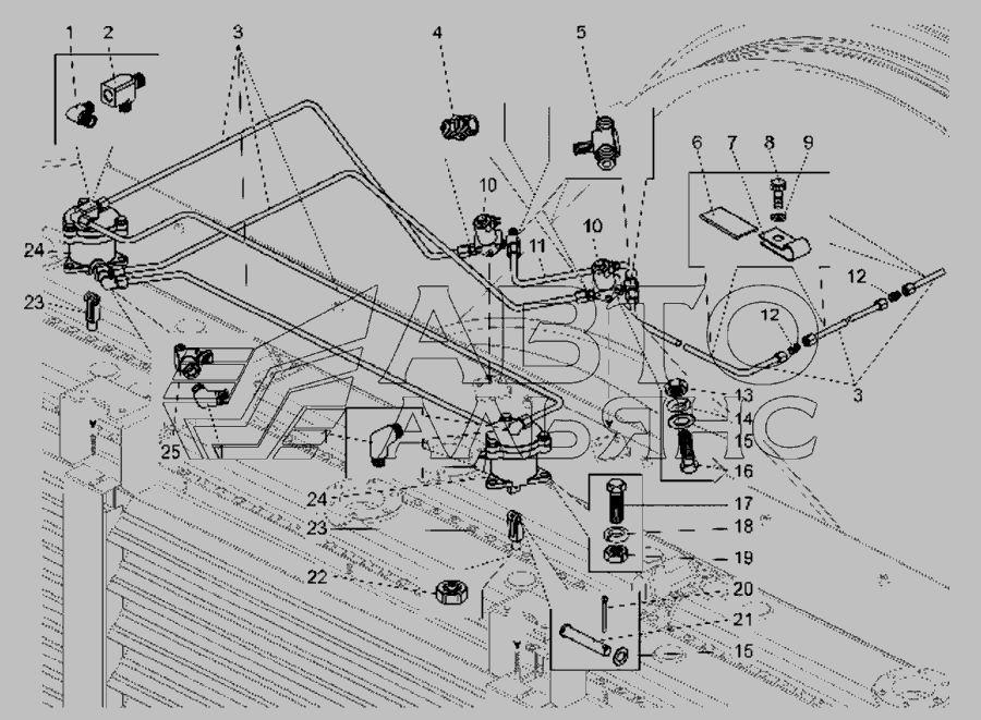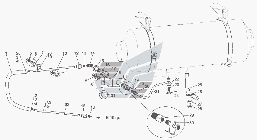Установка пневмоприводу керування жалюзі радіаторів 75306-1300015 » Дизель з підмоторною рамою та система пневмостартерного пуску двигуна