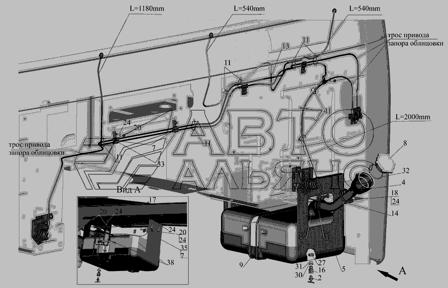 Привід керування подачею палива та зупинкою двигуна » КрАЗ із двигунами Євро-2